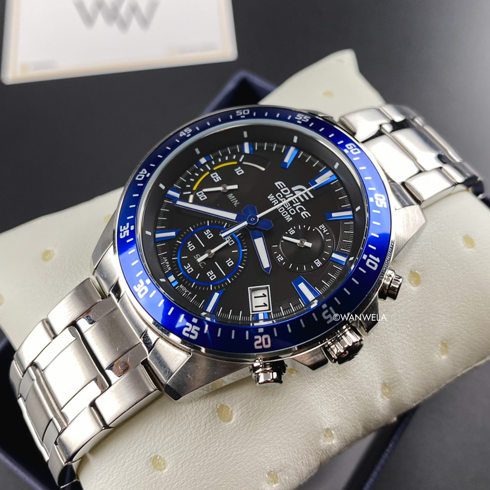 หน้าปัด: สีดำ ขอบน้ำเงิน ตัวเลขขาว
